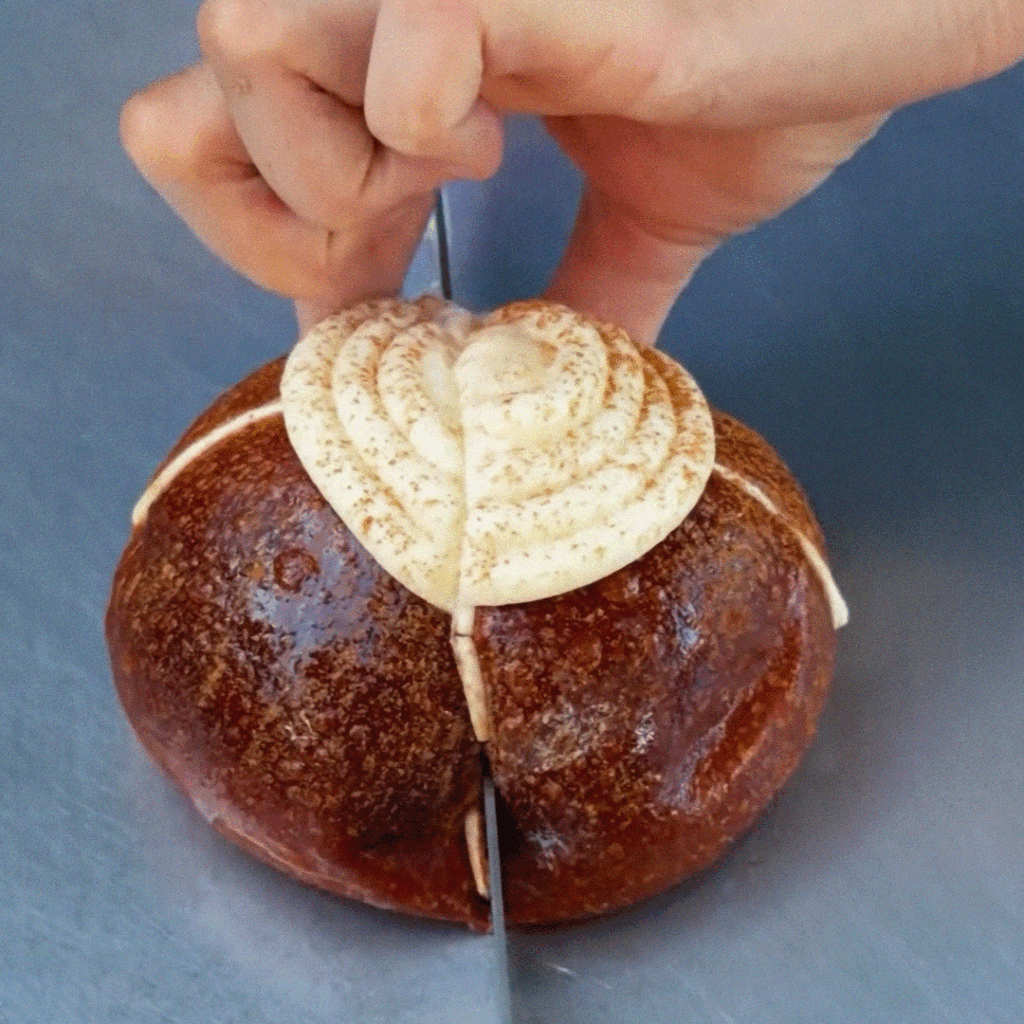 Putting a playful spin on tradition with hot cross cinni scrolls and a hot cross cold brew to wash it down.