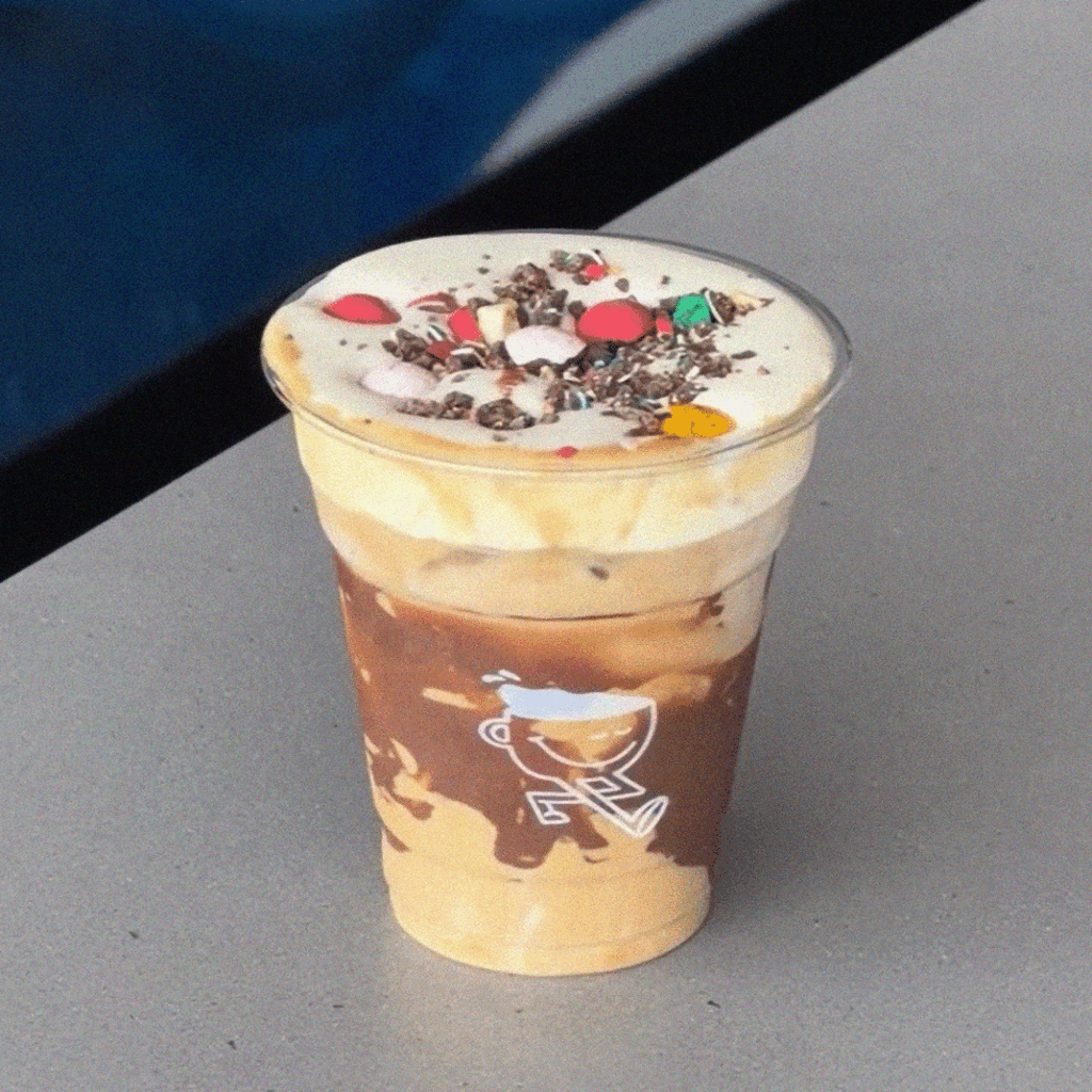 An Easter weekend exclusive: a Nutella iced latte topped with maple cold foam and mini eggs, available at Burleigh only.